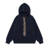 Plaid Tie And Dark Blue Hoodie